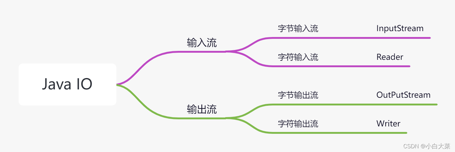 流(Stream)是 Java 中用来处理输入和输出(I/O)操作的基本抽象,它可以用来读取和写入数据。流分为两种: