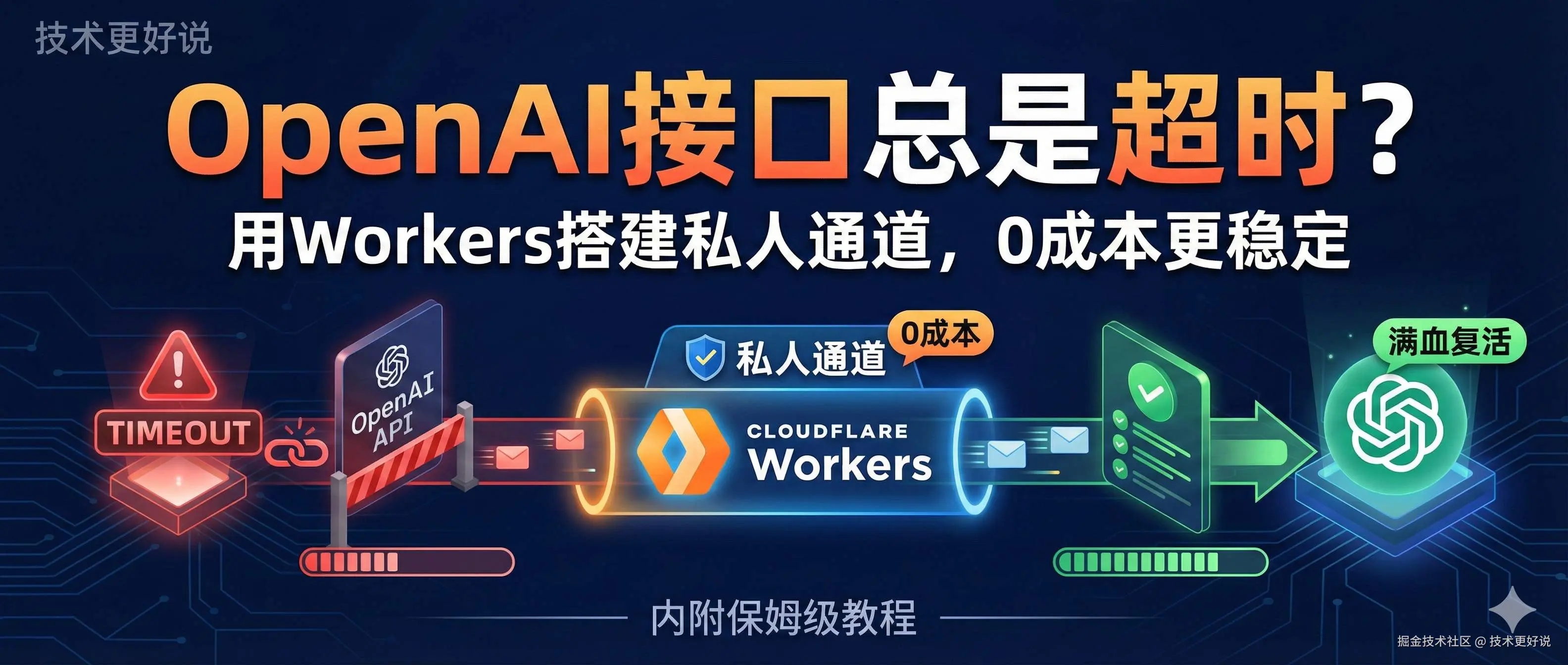 上周想开发一个ChatGPT应用玩玩,写完前端代码兴冲冲地调API,结果连接超时。试了几次还是不行,才反应过来------OpenAI在国内压根访问不了。 说实话,这种被网络拦住的感觉真的很难受。试过淘宝买的代理服务,总担心不靠谱,API Key万一泄露就完了。也想过自己买VPS搭建,但算了算成本,一个月最便宜也要几十块,关键还要折腾服务器配置和维护,想想就头大。 后来发现Cloudflare Workers这个方案,完全不花钱,5分钟就能搞定。用了两个多月,感觉真香------不仅稳定,速度还比很多付费代理快。这篇文章就把完整的搭建过程分享给你,附带可以直接用的代码。