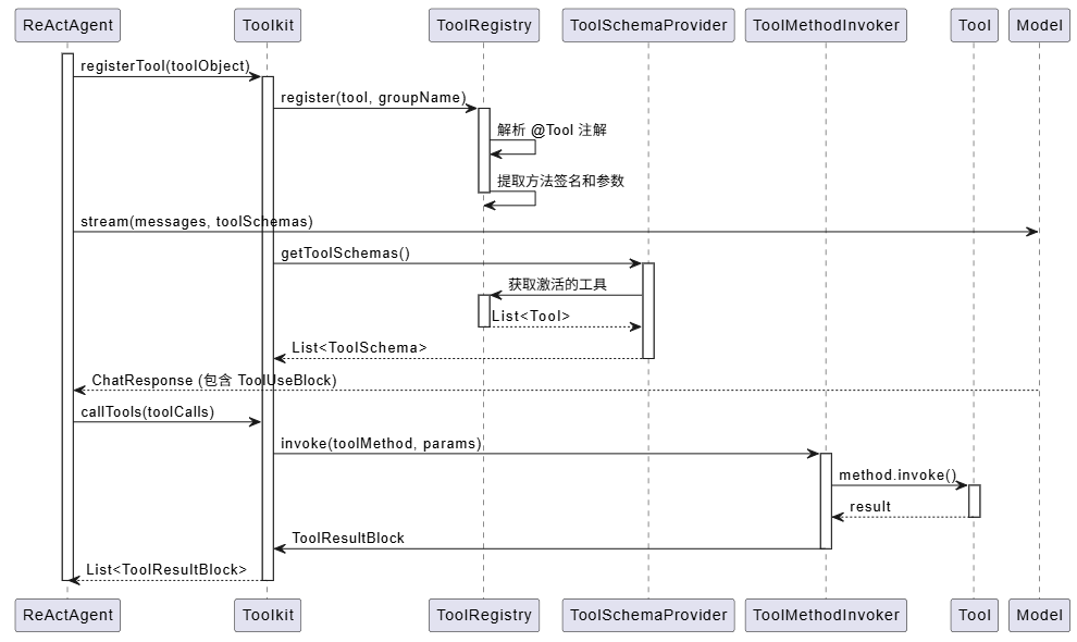 工具组管理 :ToolGroupManager 允许将工具分组,动态激活/停用某些工具组。这在复杂场景中非常有用,比如不同阶段需要不同的工具集。