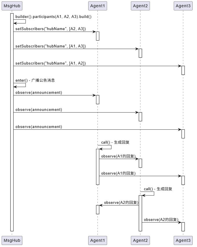 生命周期管理 :MsgHub 实现了 AutoCloseable 接口,可以使用 try-with-resources 自动清理订阅关系,避免内存泄漏。