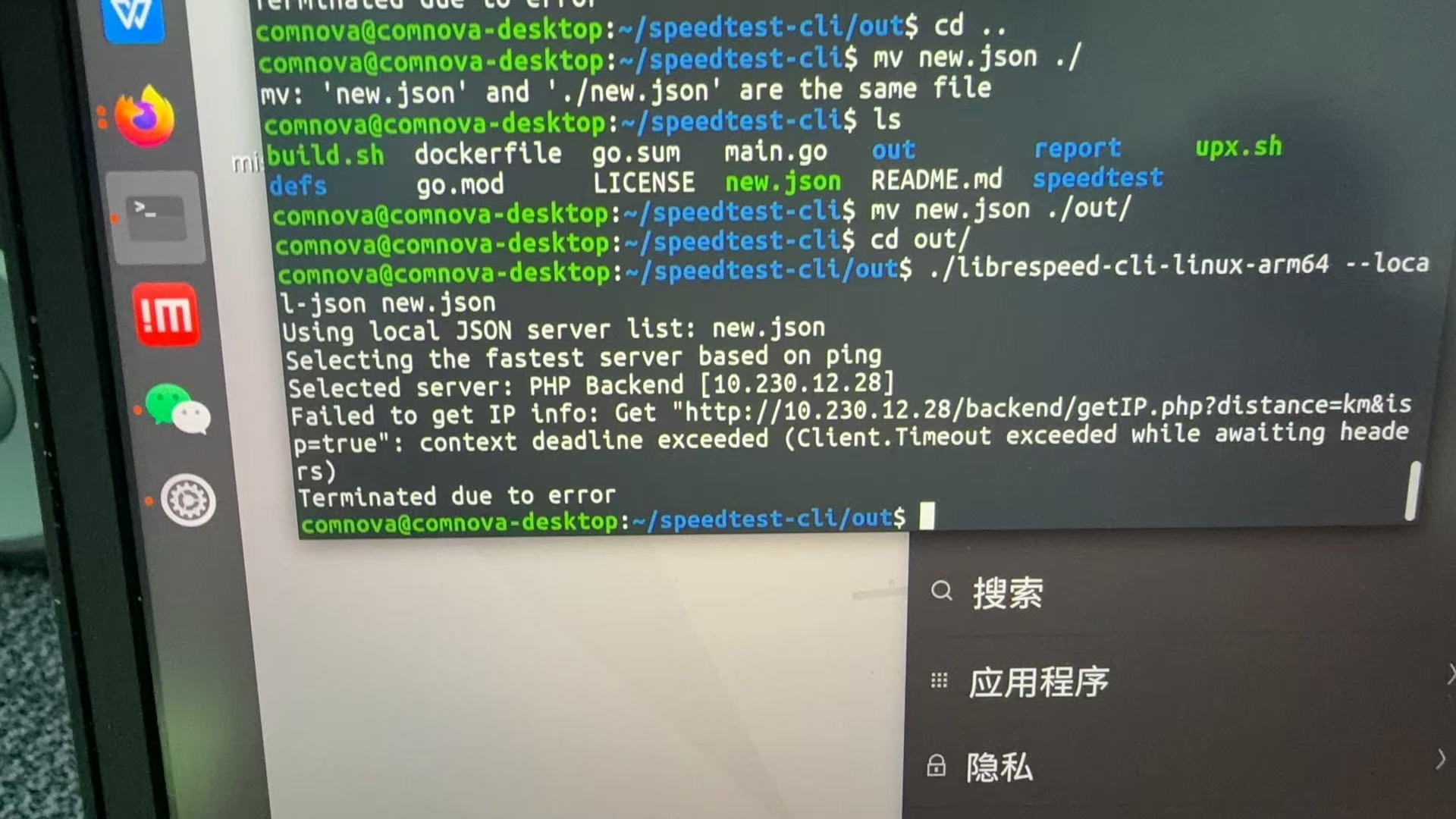 换上专网后,我的后端尝试调用librespeed失败,使用终端命令行连接远端服务器接口显示连接超时。100%复现。
