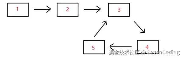 例如,输⼊{1,2},{3,4,5} 时,对应的环形链表如下图所示: