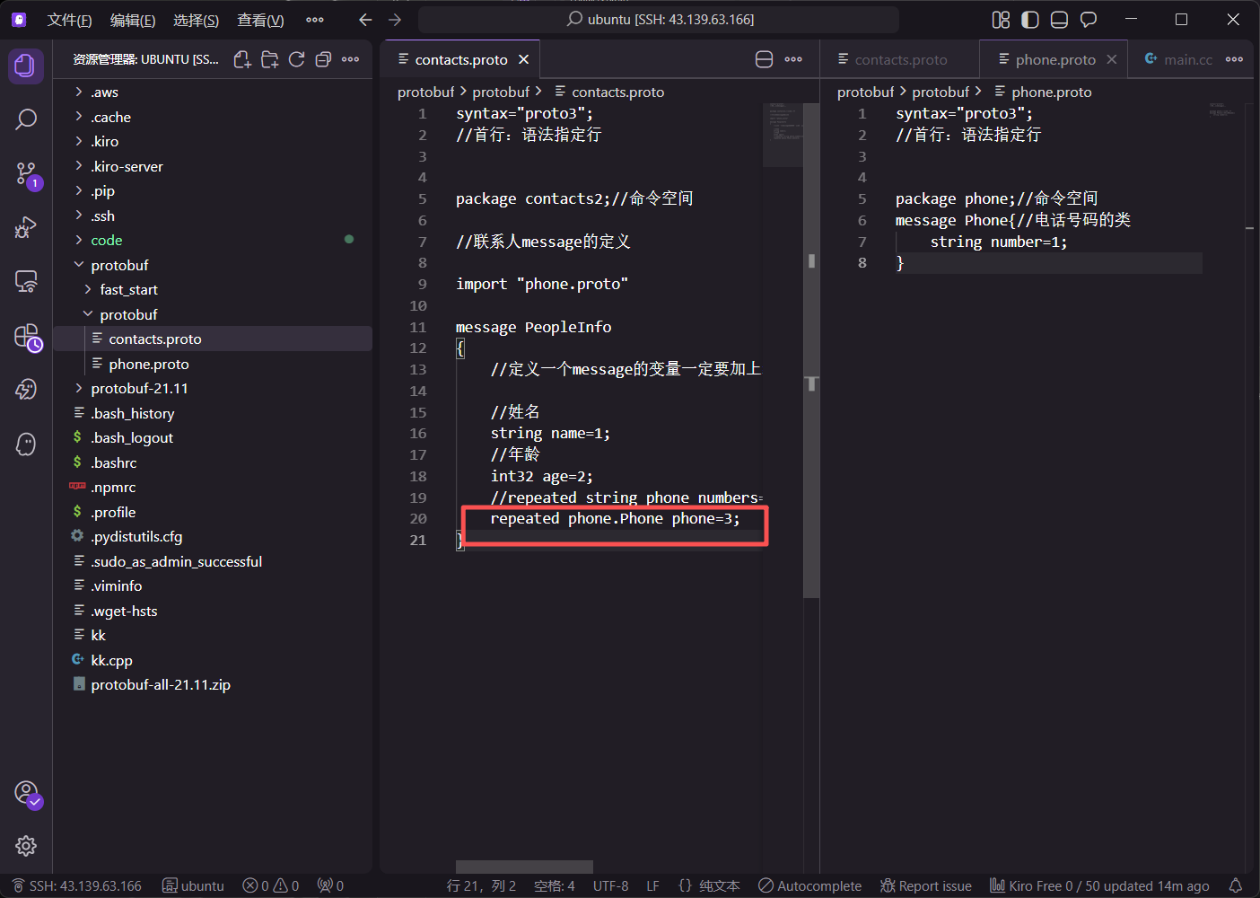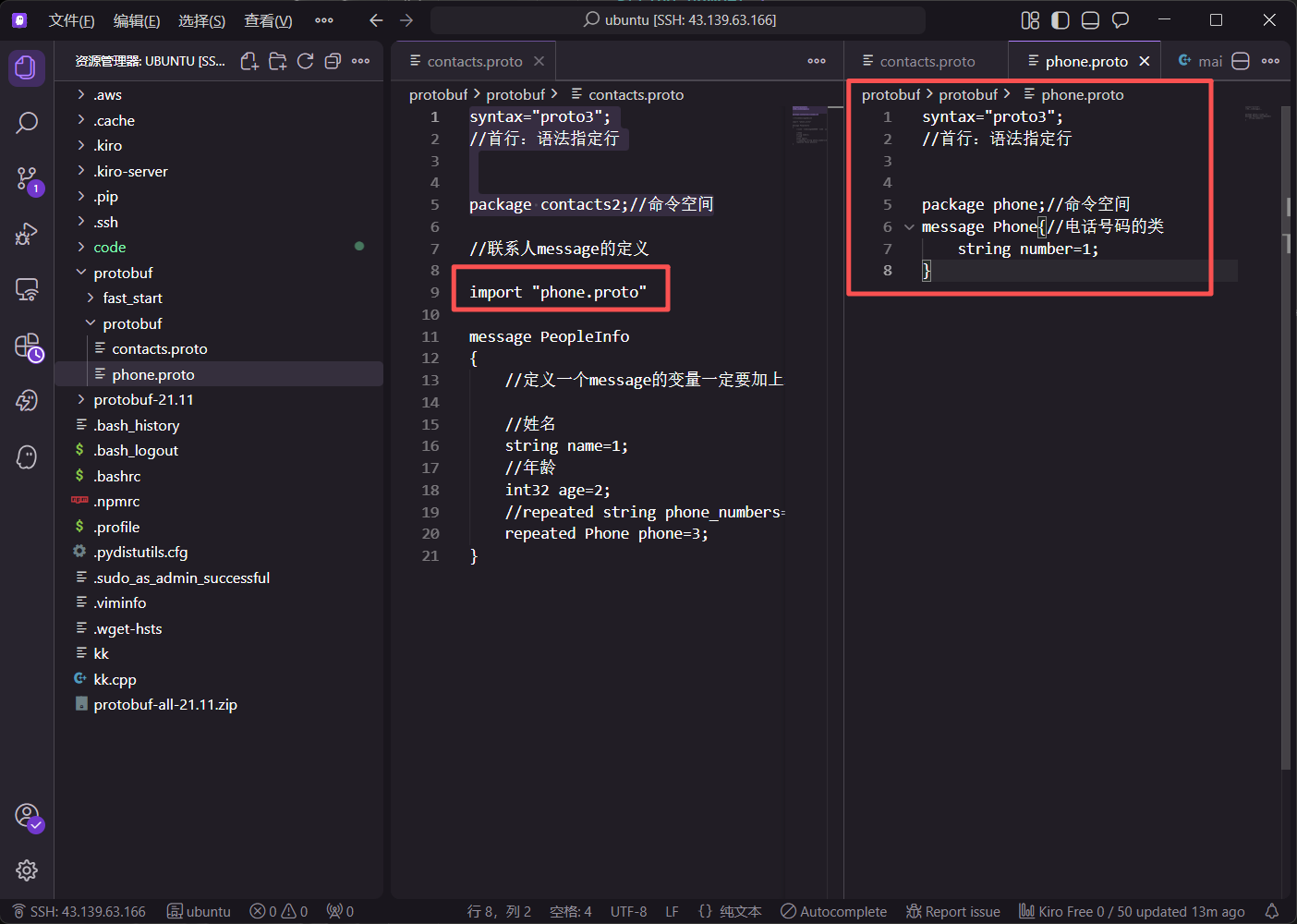 引用外部定义的 Phone 消息时,需结合 package 路径: