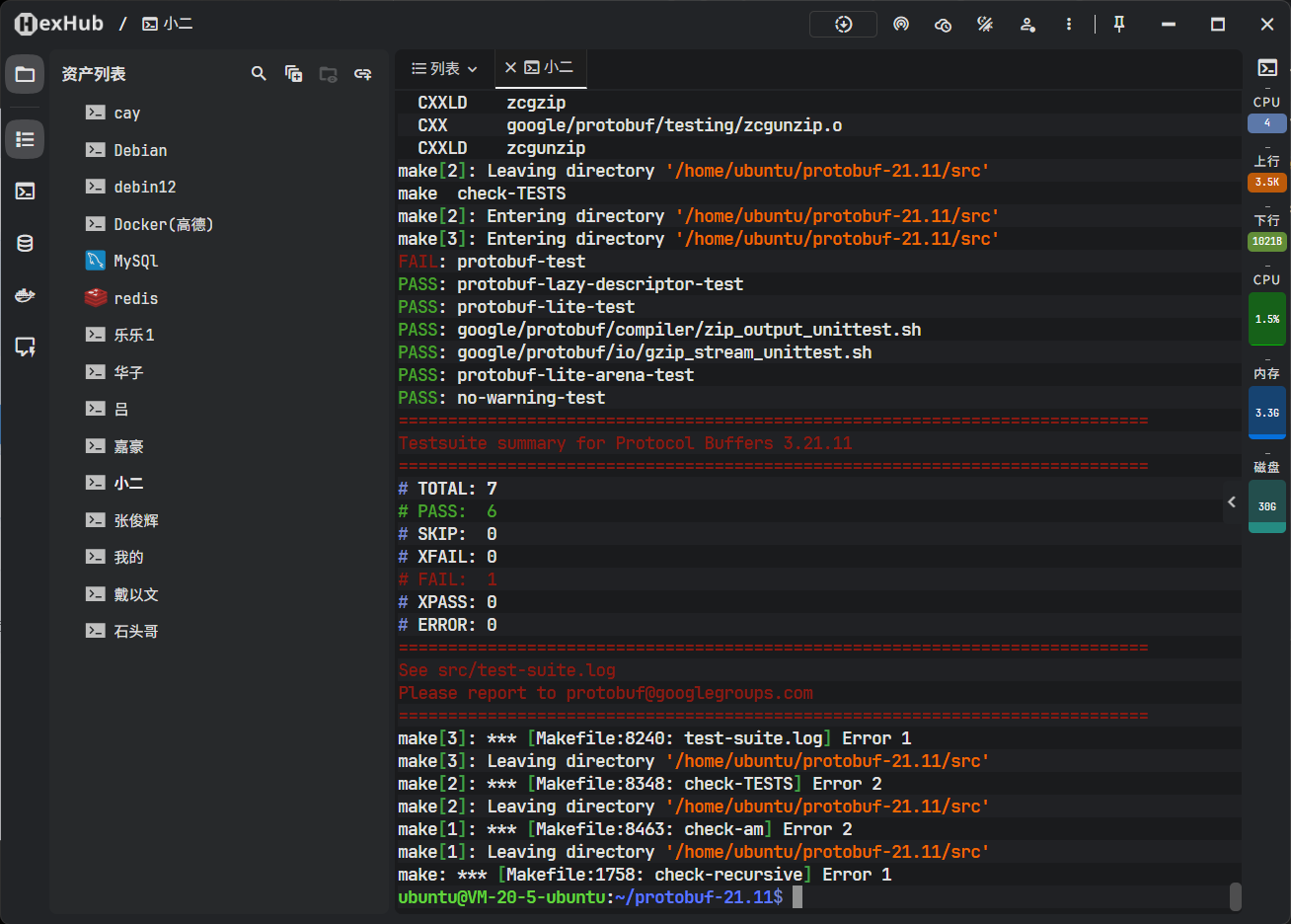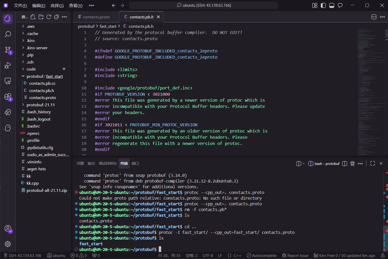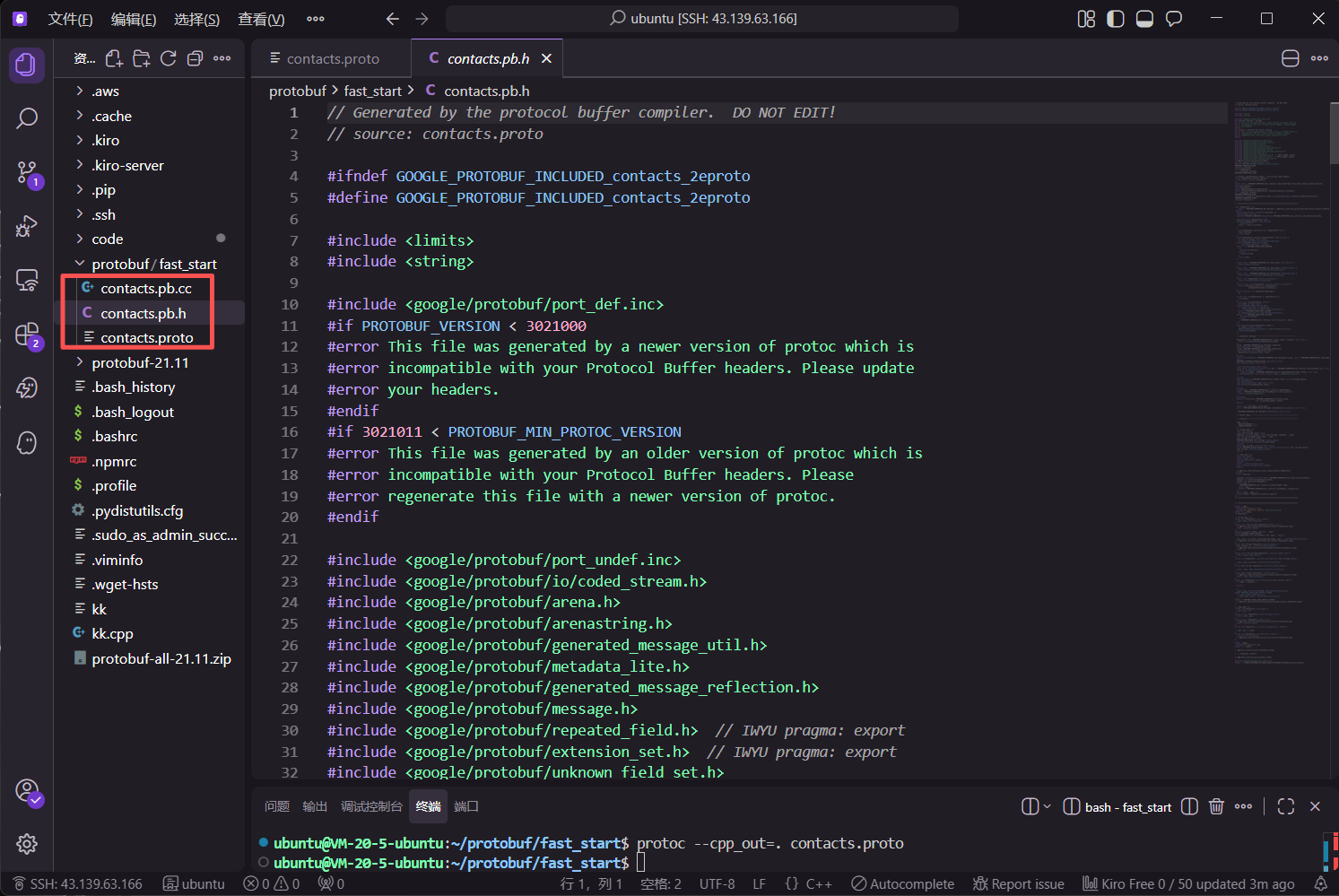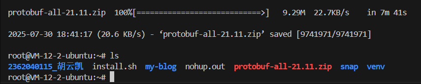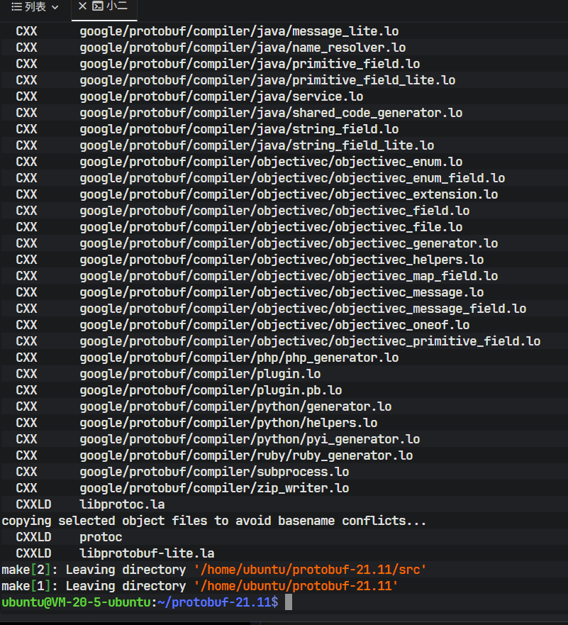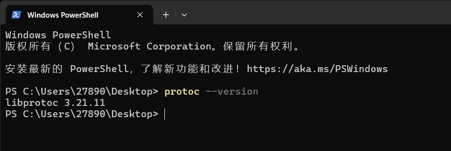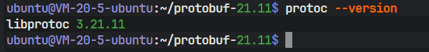 protoc --version。若显示libprotoc 21.11,则代表安装成功。