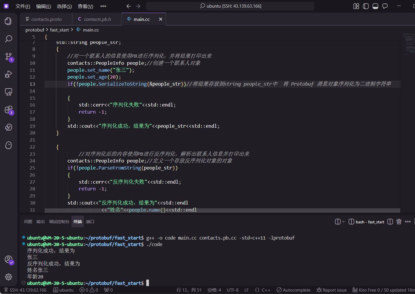 在输出中,可见字符串 "张三" 的 UTF-8 编码,而整型数值则被压缩存储。由于采用了 Varint 编码,小整数(如年龄)仅占用一个字节。