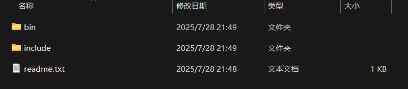 bin(存放编译器可执行文件)、include(存放核心头文件)等子目录。