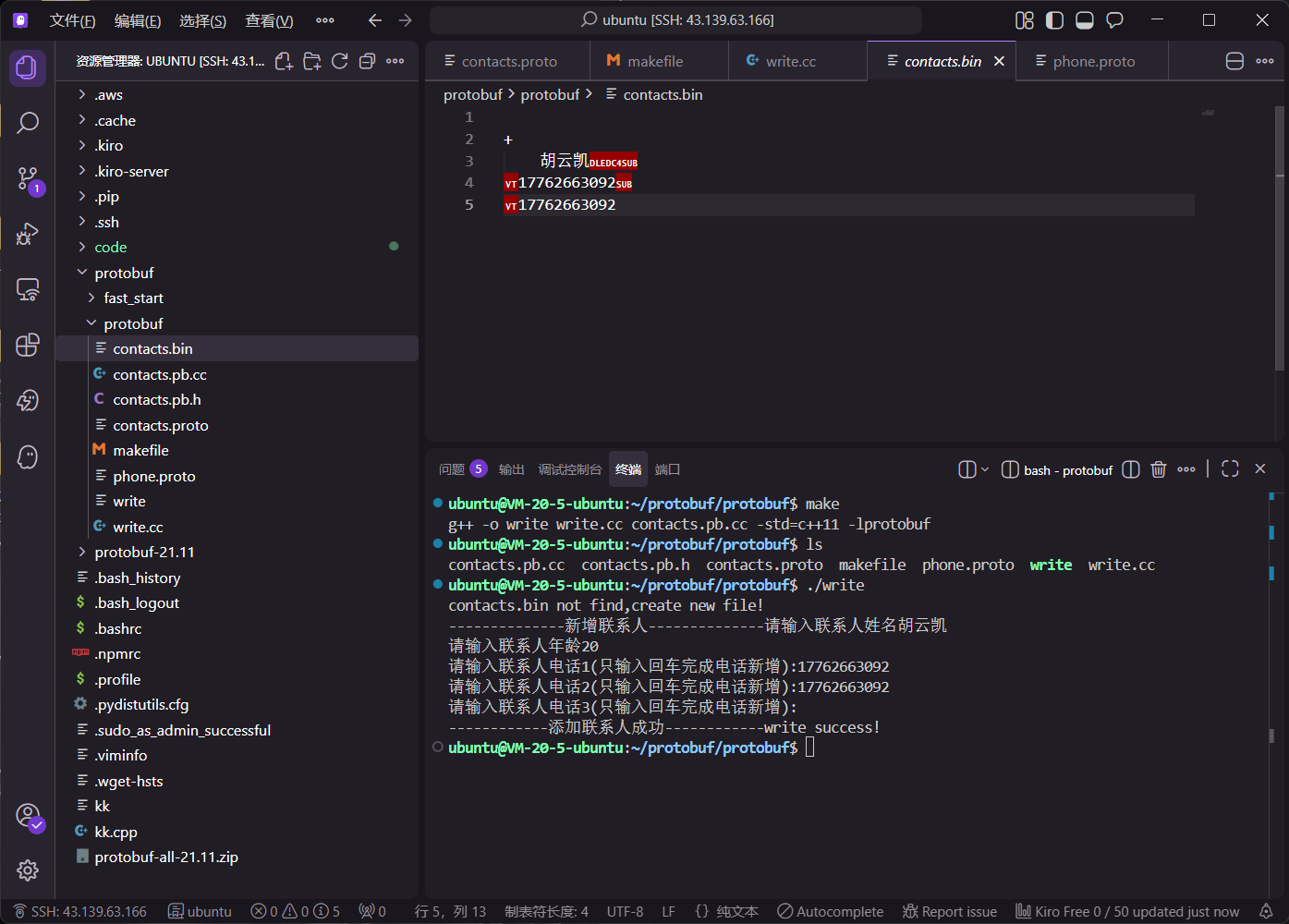 运行后,当前目录将产生一个无法直视读取的 contacts.bin 二进制文件。