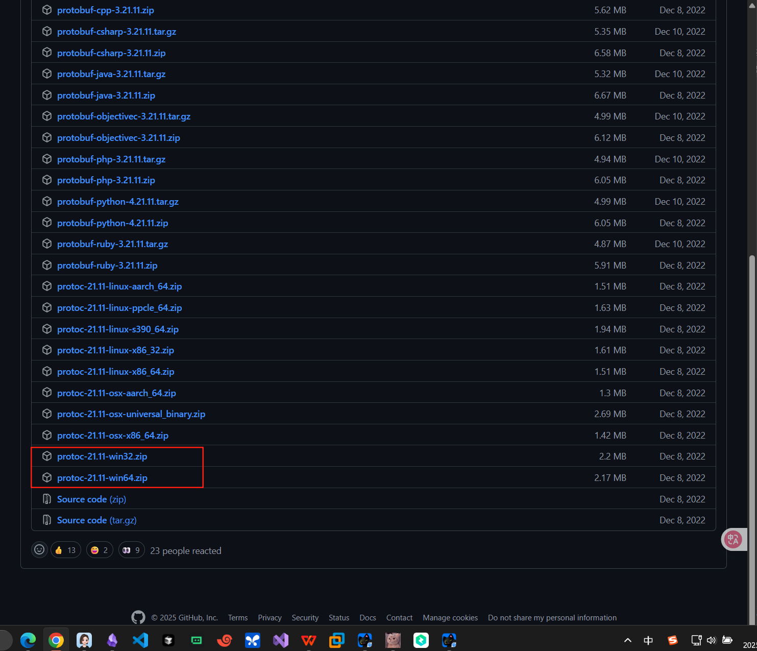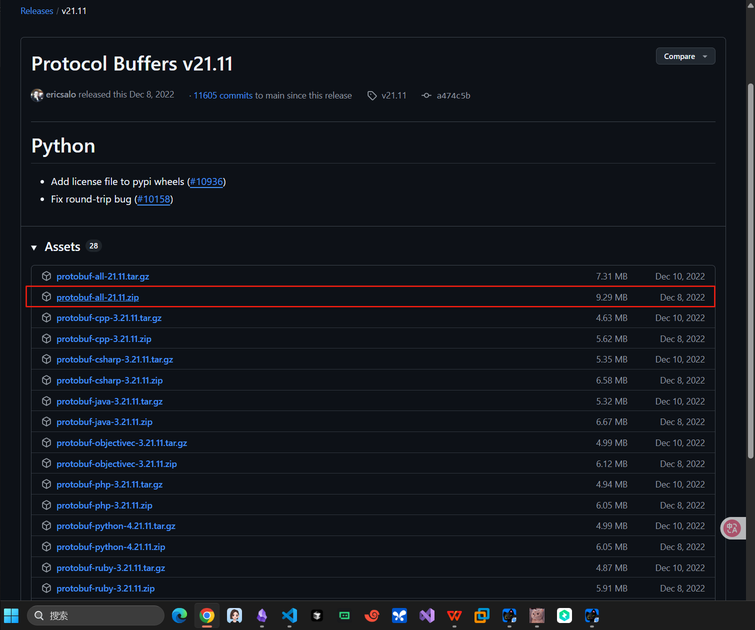 protoc-21.11-win64.zip以适配 64 位系统架构。