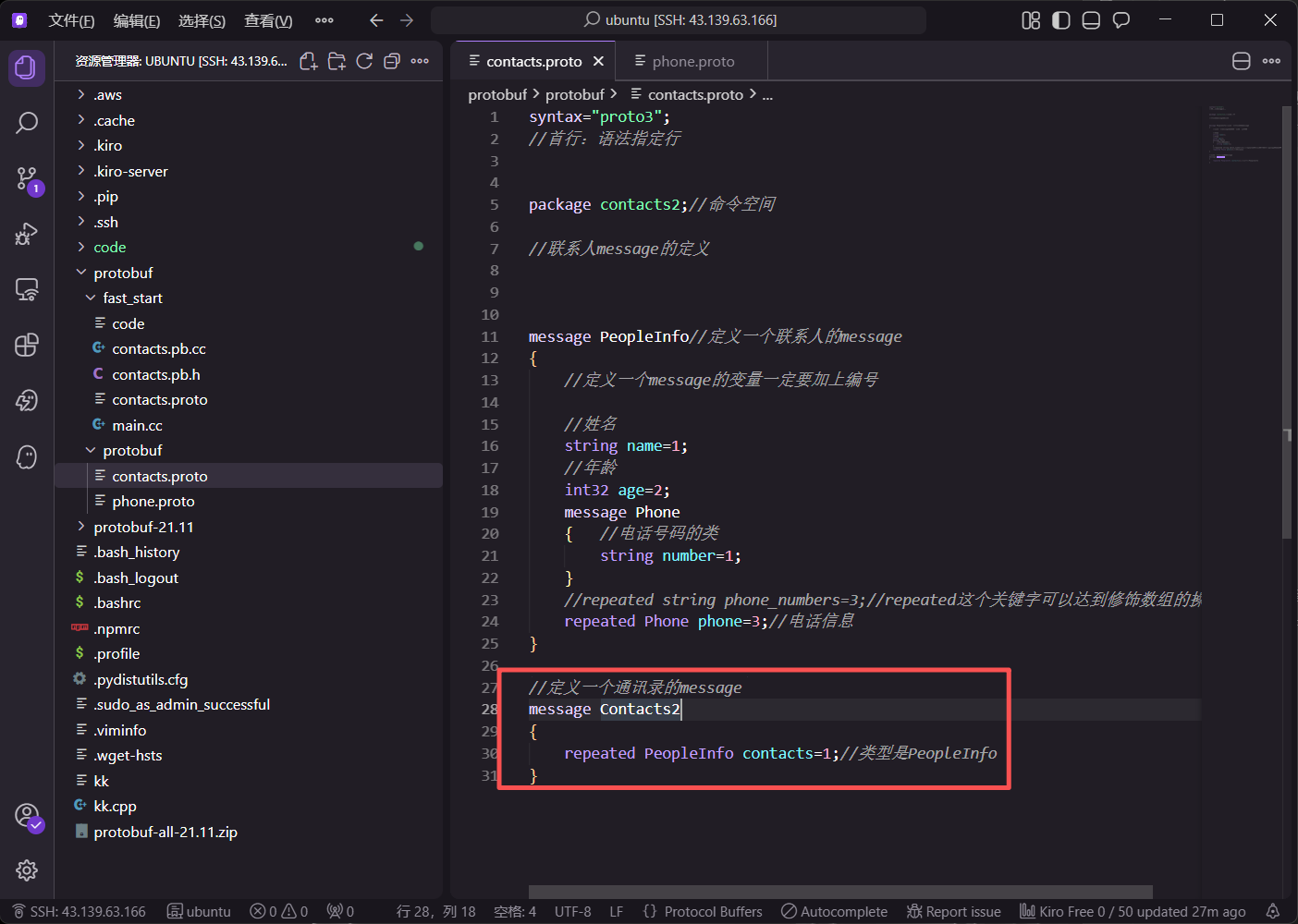 为了支持多个联系人的管理,定义顶层消息 Contacts2: