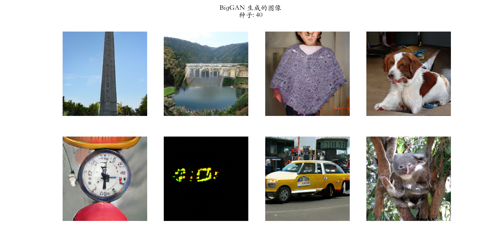 plt.suptitle(f'BigGAN 生成的图像\n种子: {seed}', fontsize=16)