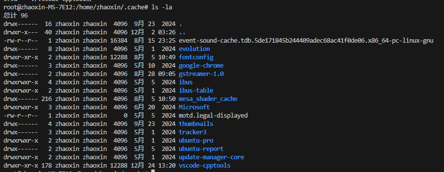 上图里的.cache文件夹里有vscode用于缓存一些数据用的。但是.cache文件夹也不全是都是vscode的:
