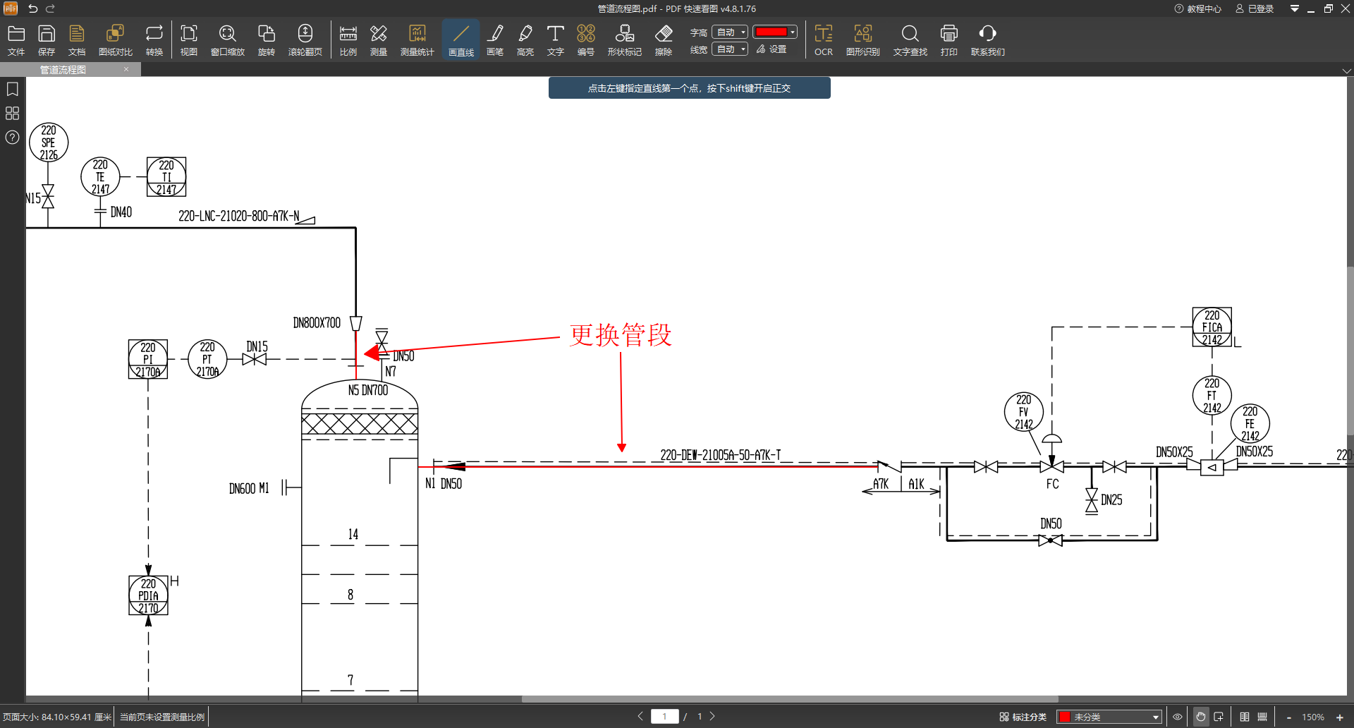 - 图纸为什么关键:工程师需要在原有PDF图纸上,精准标记出每一段需要更换的腐蚀管段,规划出最优的新管线走位,并输出带有精确尺寸和材料清单的"管段图"。对于要穿越多层平台、管廊的复杂区域,没有精准的图纸作为保证,几乎无法确保方案的可行性。