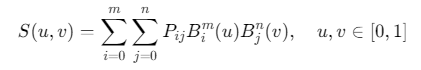 控制网格 :由(m+1)×(n+1)(m+1)×(n+1)(m+1)×(n+1)个控制点构成的矩阵