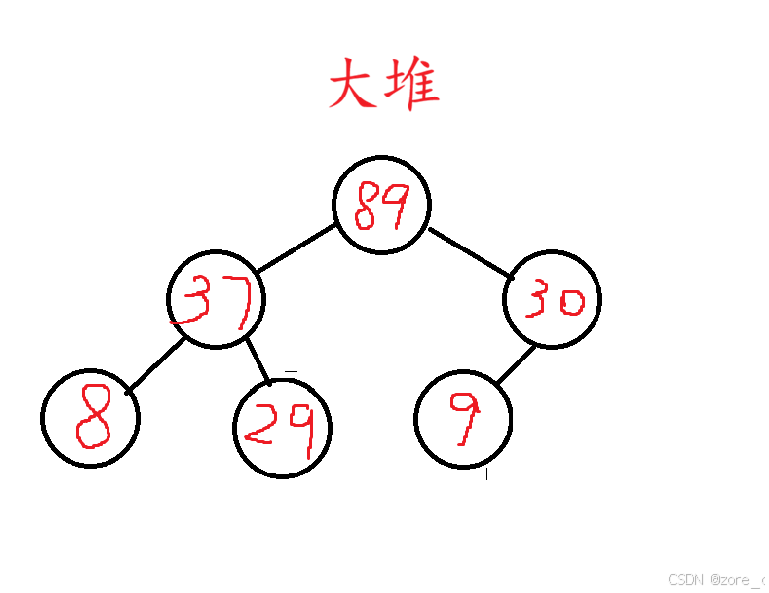 在大堆中,任何一个父结点的值都要大于或等于子结点的值