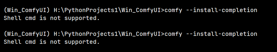 官方 https://docs.comfy.org/comfy-cli/getting-started 默认只支持 PowerShell/Bash 的 Tab 补全,Windows CMD 会无情提示: