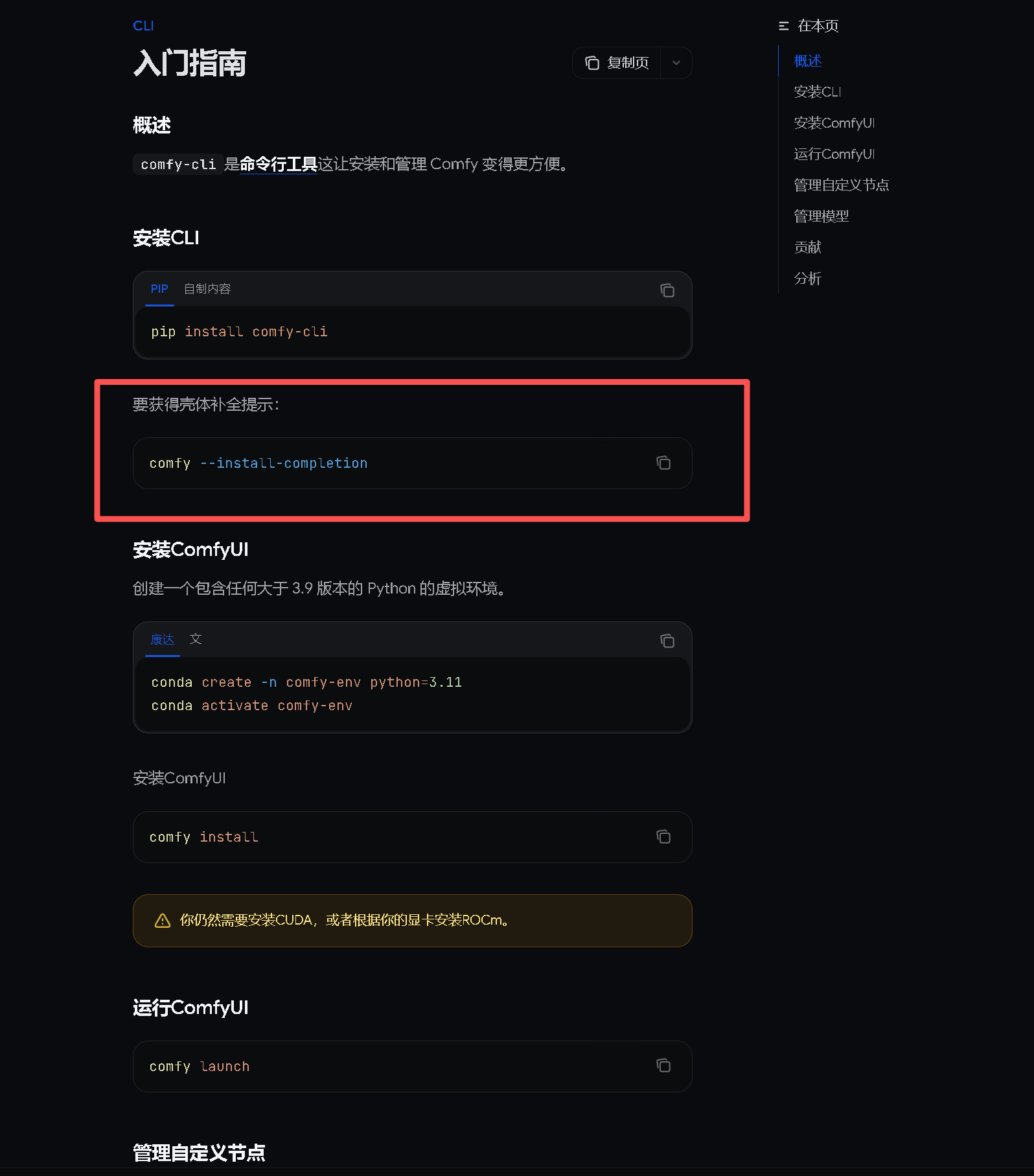 ComfyUI 官方提供的 https://docs.comfy.org/comfy-cli/getting-started 把打包、发布、节点管理等操作集中成一条命令,但默认只在 PowerShell/Bash 支持 Tab 补全 。