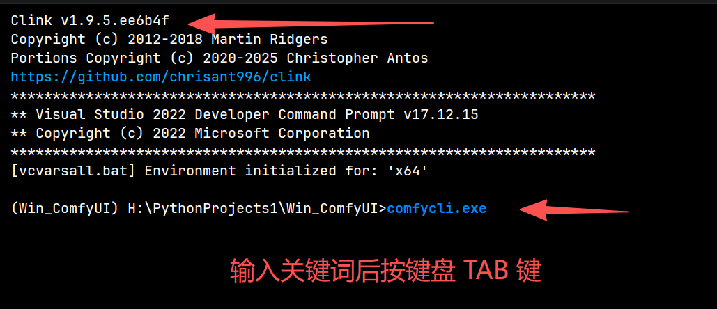 关键词:ComfyUI、comfy-cli、CMD、Tab 补全、Clink、PowerShell、Windows