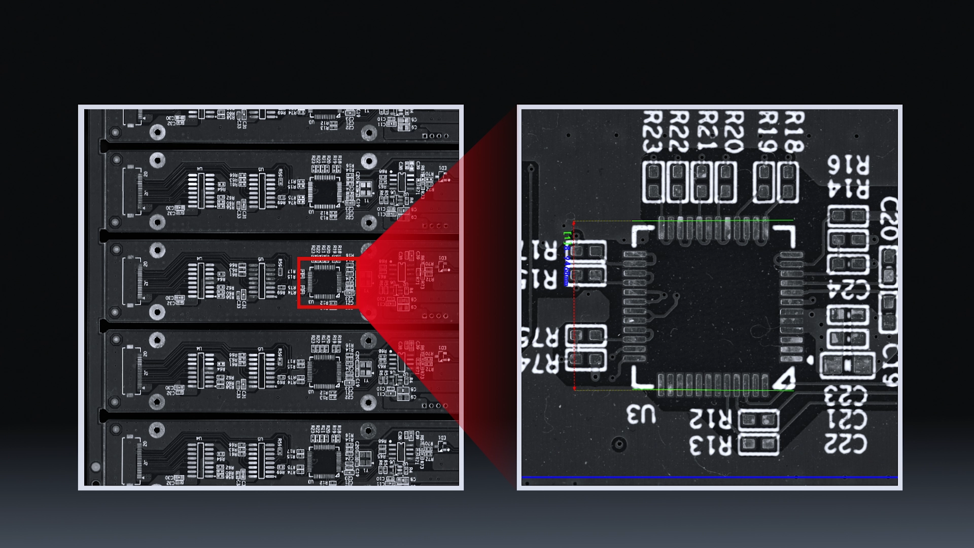端子尺寸:可自动测量同一接口内所有PIN针的宽度、间距(Pitch)、以及各排针的相对位置,确保符合电气规范。