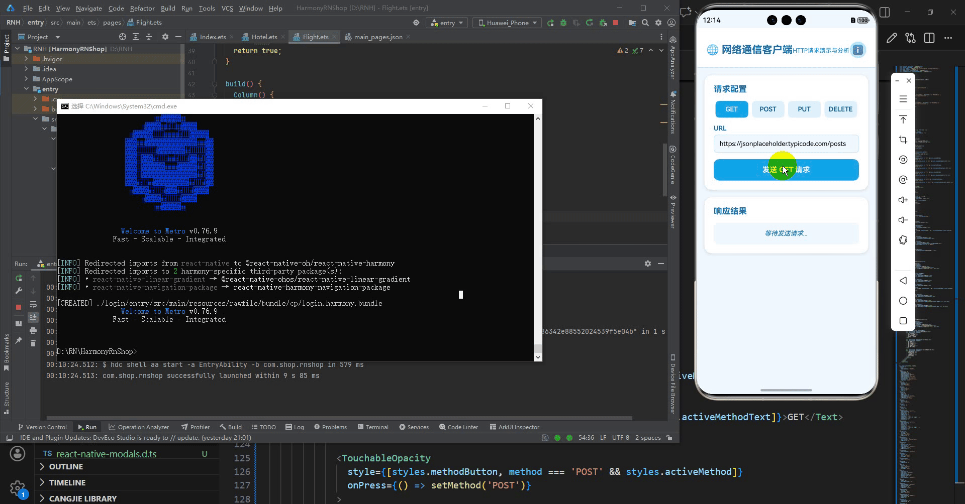 接下来通过打包命令npn run harmony将reactNative的代码打包成为bundle,这样可以进行在开源鸿蒙OpenHarmony中进行使用。