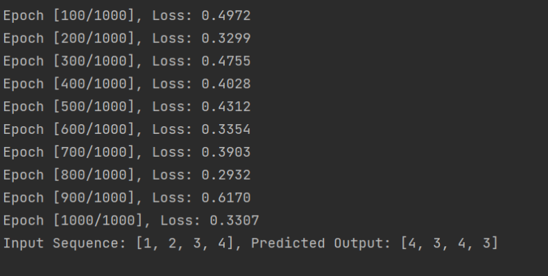 print(f'Input Sequence: {test_input}, Predicted Output: {predicted_output}')
