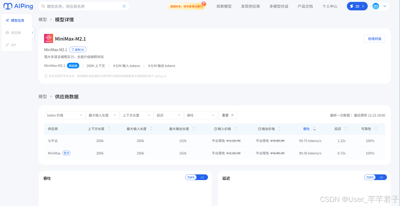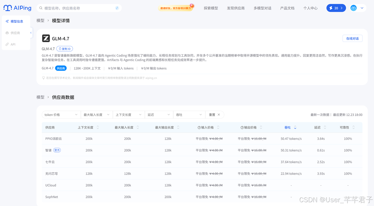 年 12 月 23 日,清程 AI Ping 平台正式开放 GLM-4.7 与 MiniMax M2.1 两款国产旗舰大模型的免费体验 ------