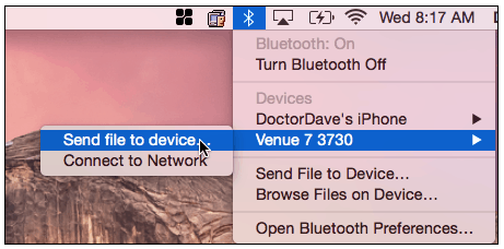 步骤 4:连接成功后,转到Mac菜单栏上的蓝牙图标,然后点击"向设备发送文件"。