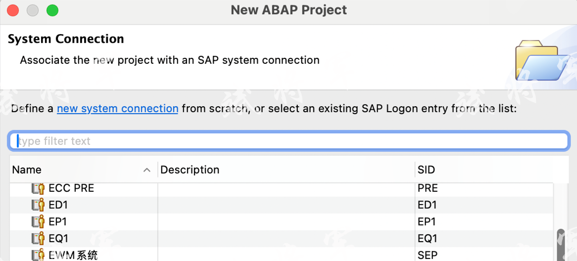 但是MAC中的eclipse安装ABAP插件之后,在创建ABAP project时,无法读取SAP GUI中配置的登录地址,创建时比较麻烦