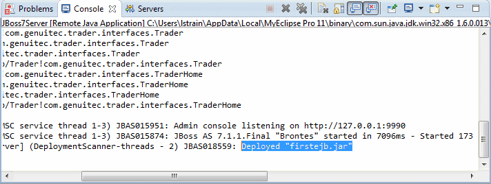在运行XDoclet之后,firstejb项目包含了新版本的Trader和TraderHome接口以及ejb-jar.xmll 和 jboss.xml部署描述符。