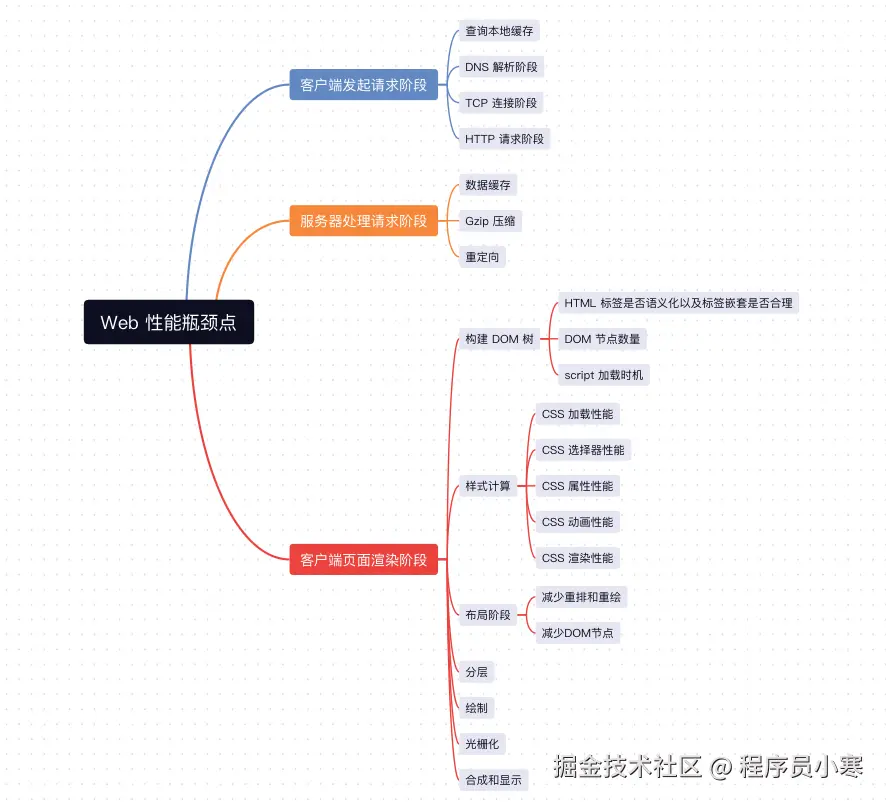 - 客户端页面渲染阶段的瓶颈点:构建 DOM 树阶段、CSS 样式计算阶段和布局阶段。