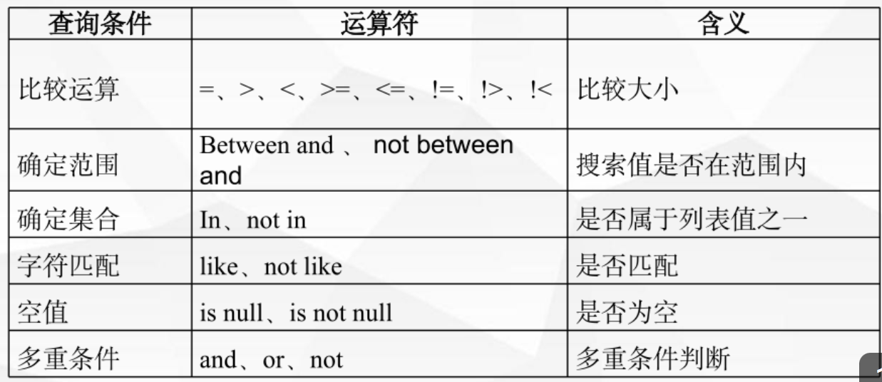 作用 :在查询表数据时,通过WHERE后的条件表达式(如年龄>18、性别='男'),只返回符合条件的数据行,实现精准数据筛选。