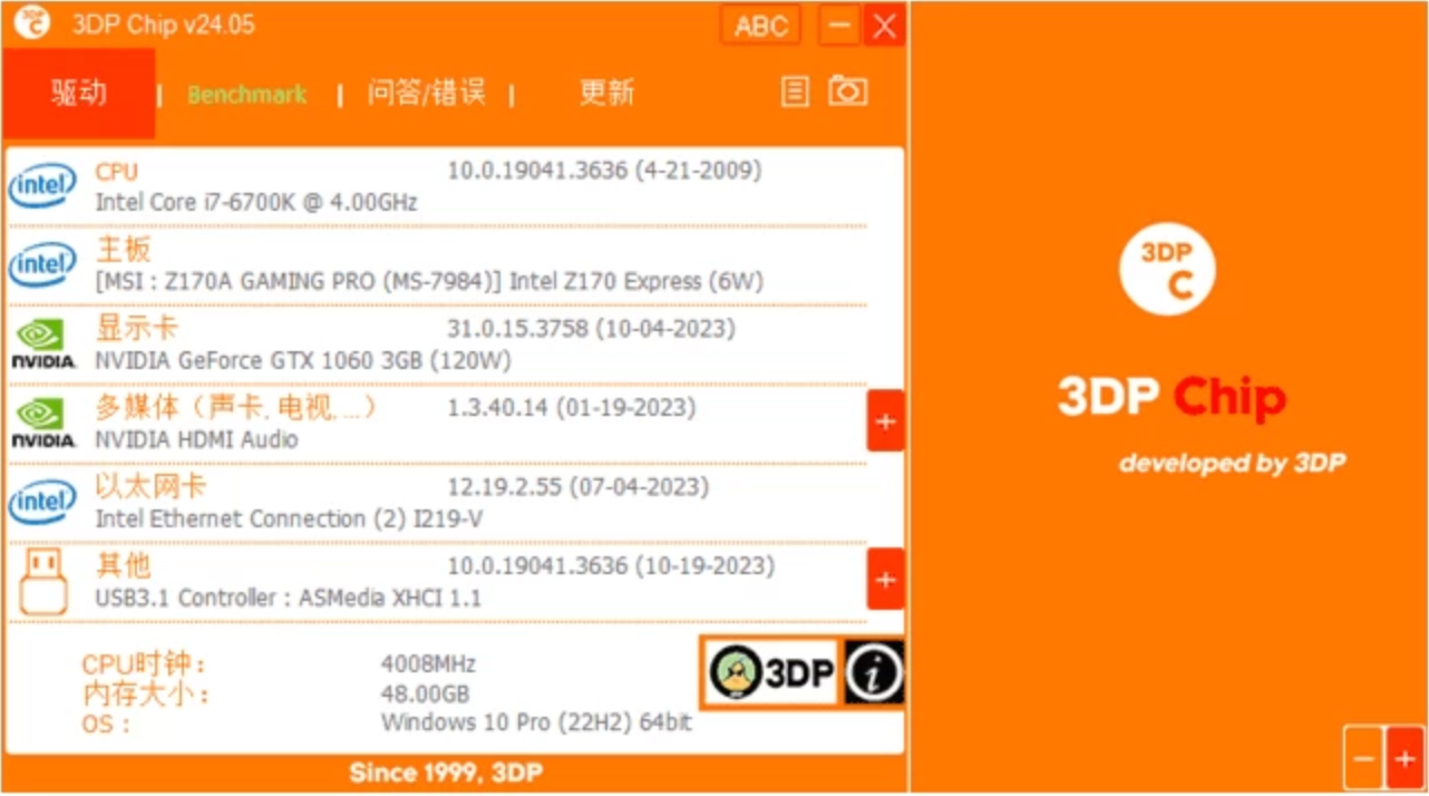 不管你是想更新驱动提升硬件性能,还是备份驱动以防万一,又或者是想快速了解电脑硬件配置,这款3DP Chip 驱动程序更新工具都能满足需求。免费、绿色、免安装,操作简单又实用,再也不用为找驱动、更驱动头疼了。