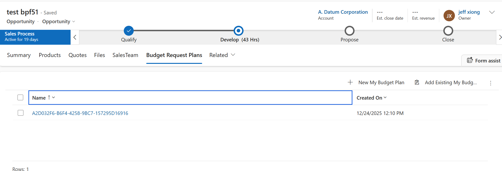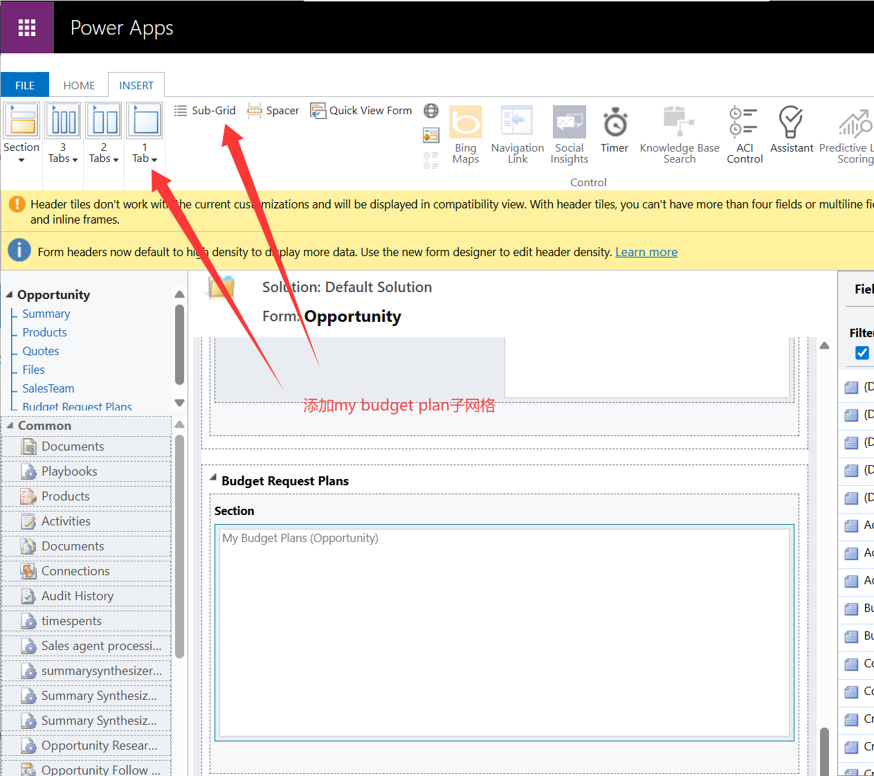 第一步,将My Budget Plan记录的子网格插入到表单中