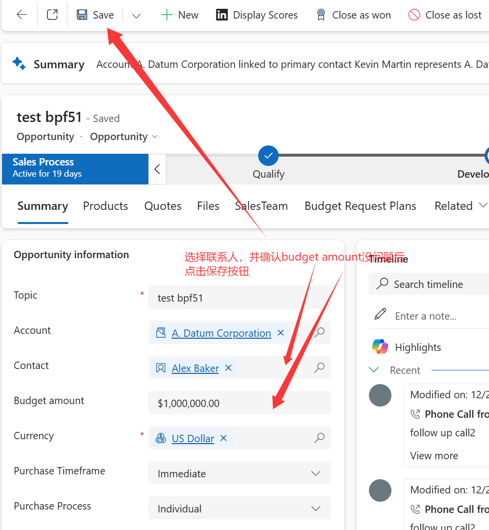在商机实体上面,我们有联系人记录,如果该记录有值,那么在保存的时候,系统会自动创建一条Budget Plan记录用来跟踪当前商机的预算情况。接下来我们就来实现它吧: