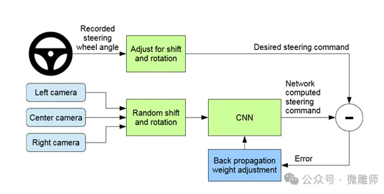 2016年,NVIDIA团队的论文《End to End Learning for Self-Driving Cars》首次证明端到端深度学习可直接从像素映射到方向盘控制 ,为端到端自动驾驶的后续研究奠定了基础。该论文提出名为 PilotNet 的卷积神经网络结构,输入是66×200×3的图像,中间经过了5层卷积提取视觉特征,如边缘、纹理,经过3层全连接回归转向角度,最终输出方向盘转向角度,该数值是一个可以直接控制车辆的连续值。