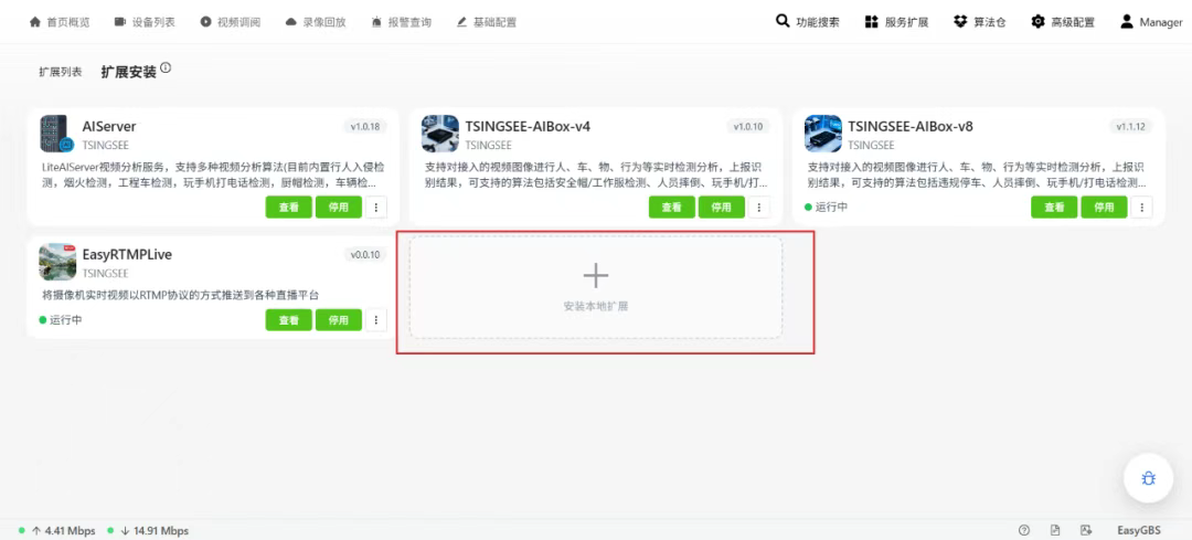 扩展市场的优势在于其"即装即用"的便捷体验。以近期发布的新版EasyGBS为例,它带来的新扩展插件,清晰地诠释了这一理念。