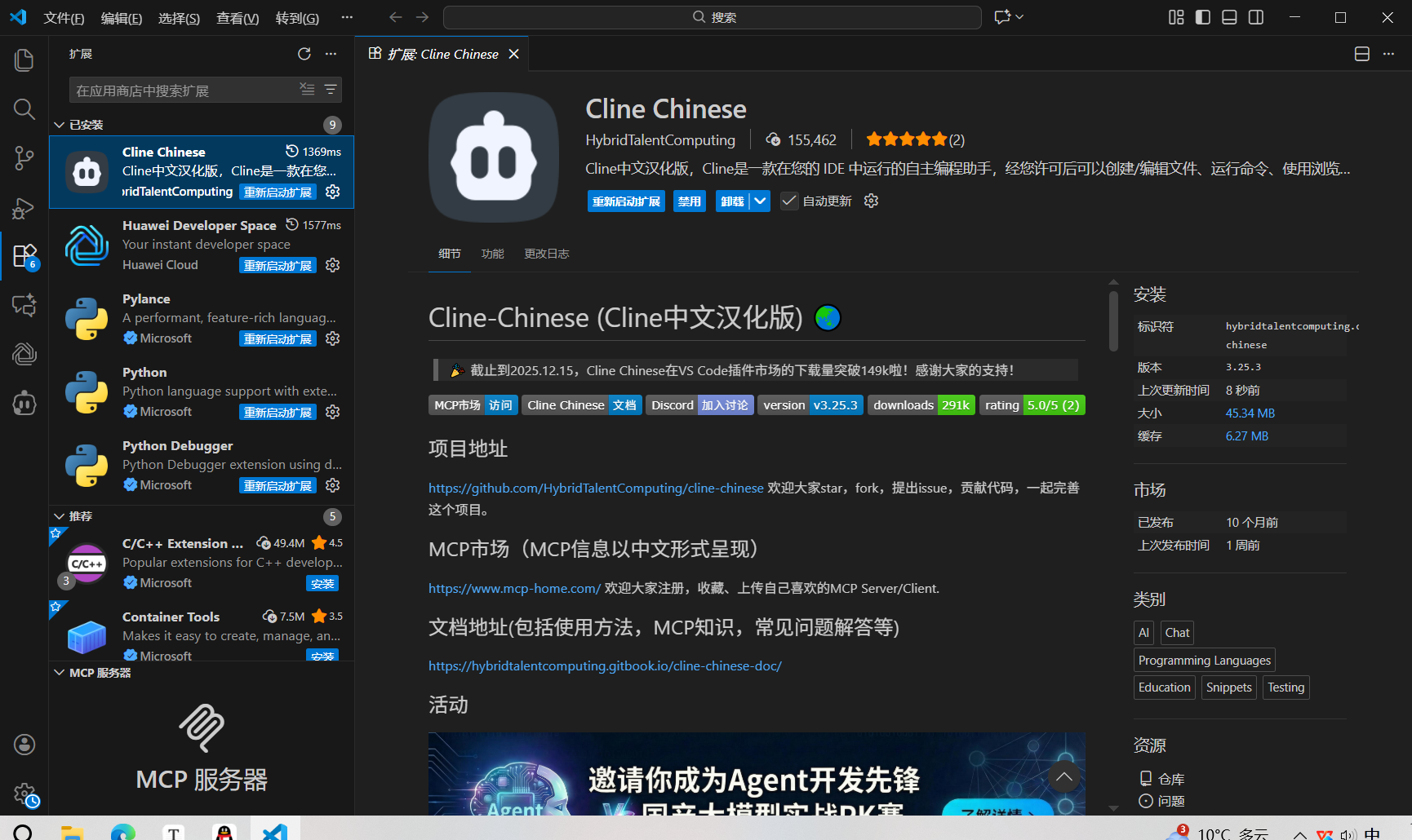 1、VSCode按照Cline插件,完成安装后,可以在左侧活动栏中看到Cline的图标
