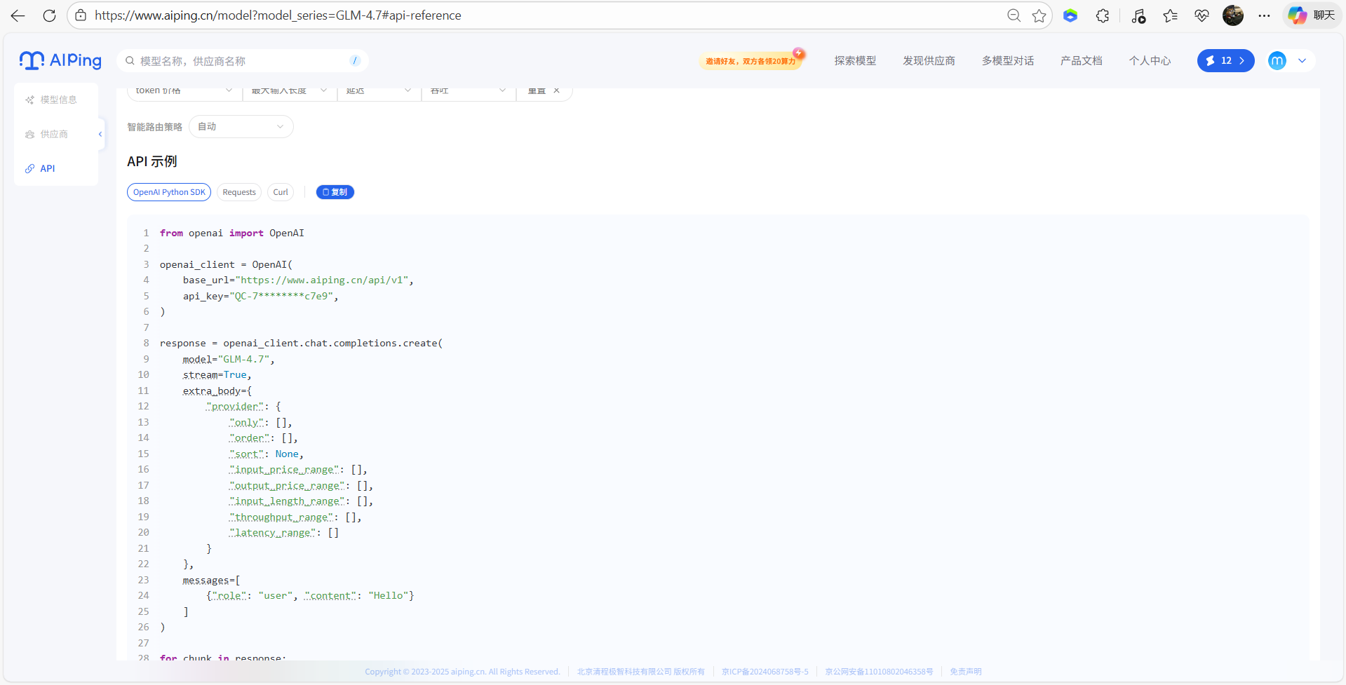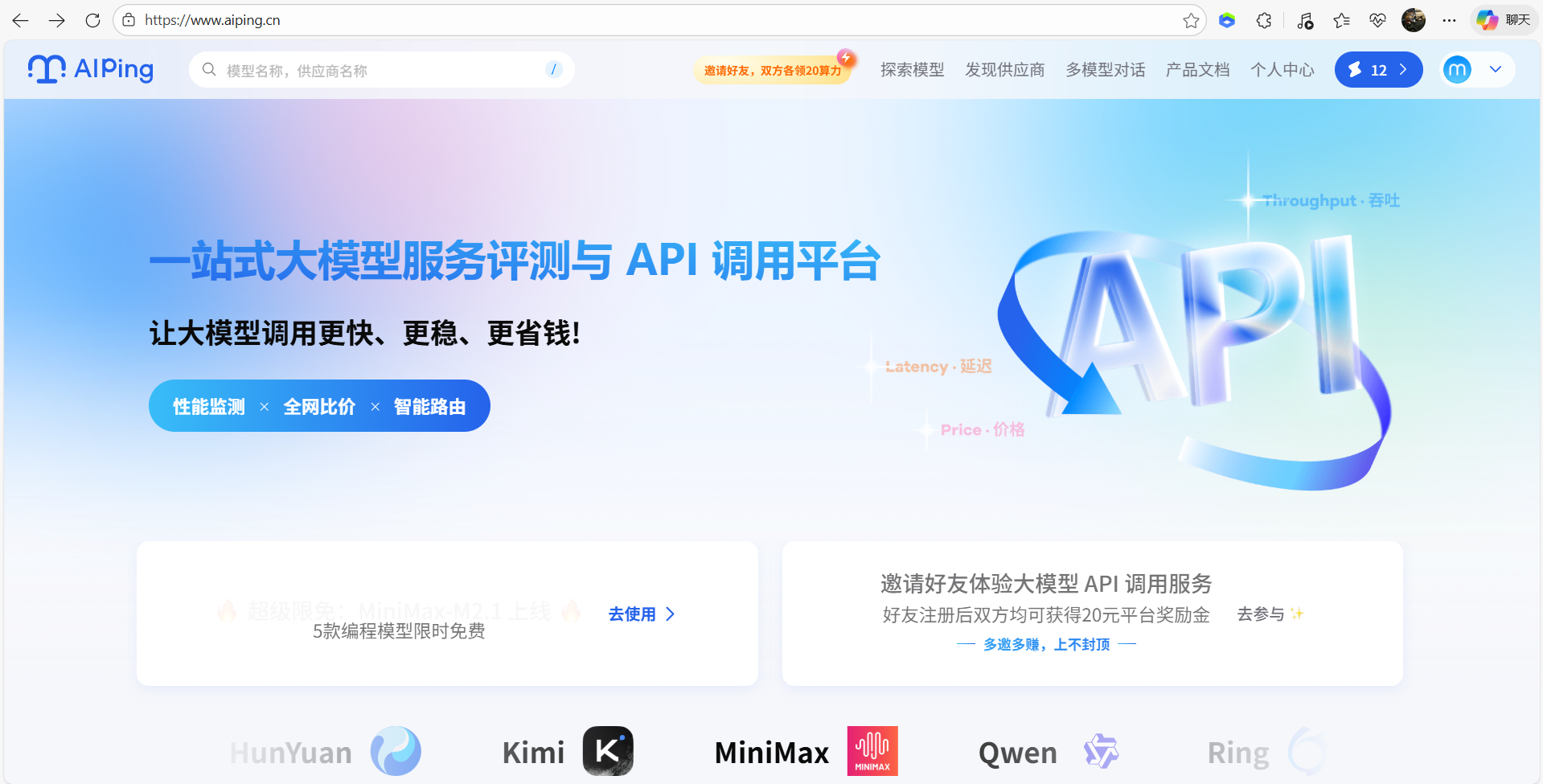 🎁AI Ping(aiping.cn)邀友福利来袭!邀请好友完成注册,双方各得 20 元平台算力点,所有模型及供应商全场通用,邀友无上限、福利赚不停,赶紧分享解锁双重福利~https://aiping.cn/#?channel_partner_code=GQCOZLGJ (注册登录立享30元算力金)