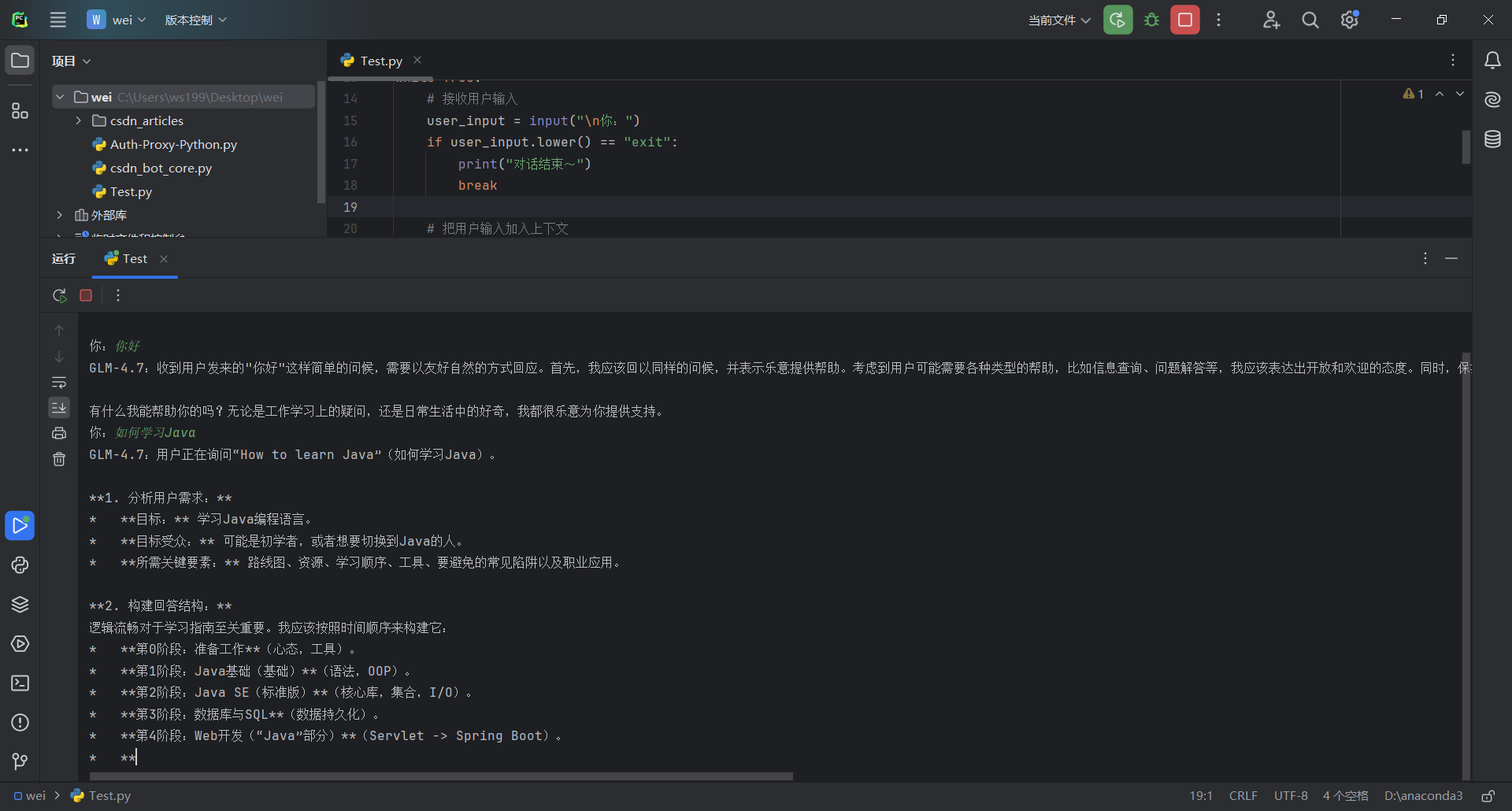 print("GLM-4.7 对话助手(输入 'exit' 退出):")