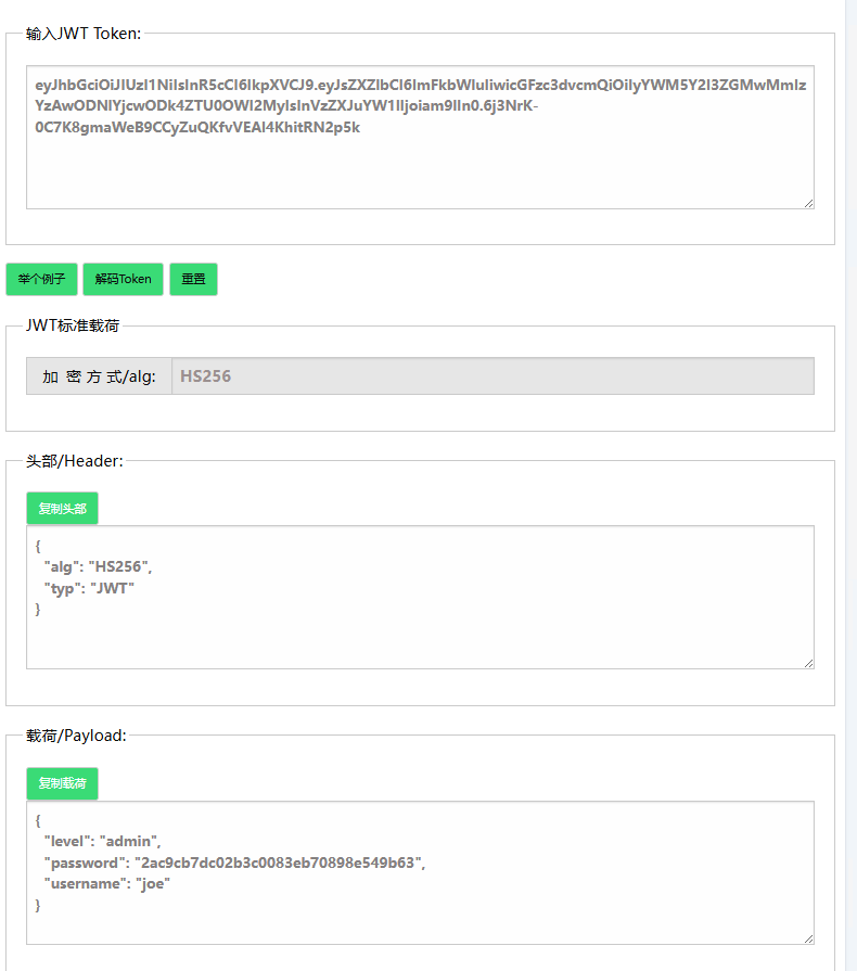 上边提供的是加密的JWT的token,利用解密的网站进行解密