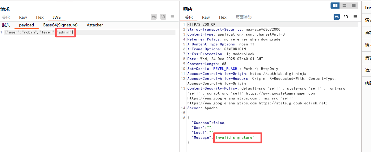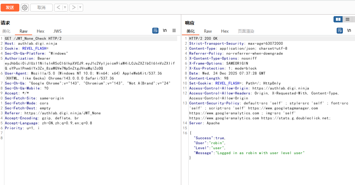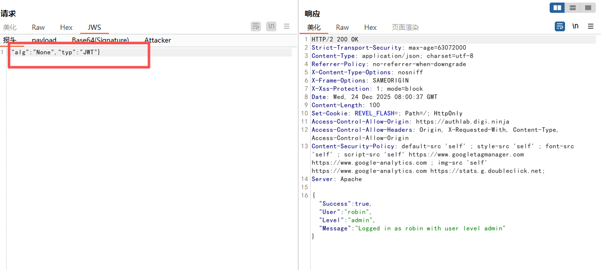 可以在插件里边设置算法为None发现admin权限登陆成功