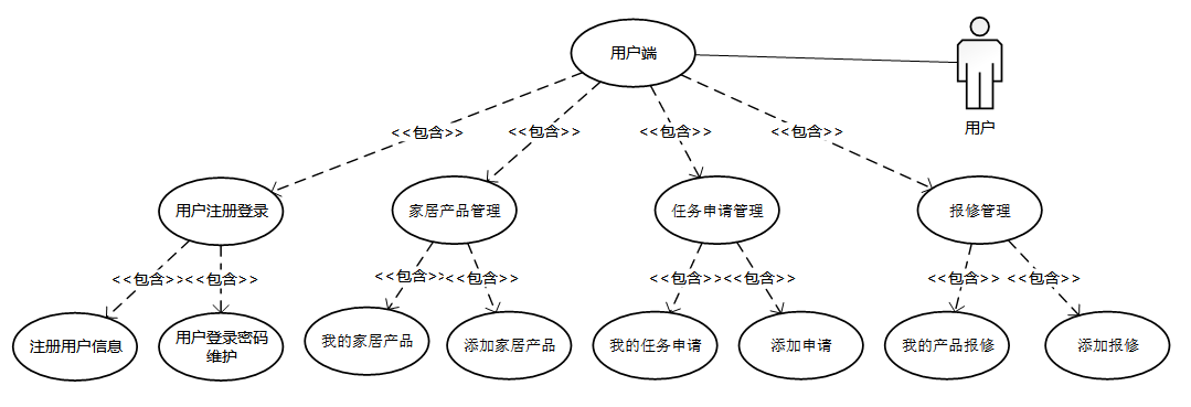 智能家居系统的主要用户包括了前端用户及后台管理人员,用户可通过系统平台实现智能家居产品的添加、任务设定及报修,管理员用户则通过系统后台维护管理家居产品信息以及审核用户提交的任务申请,具体系统用户需求分析内容如下: