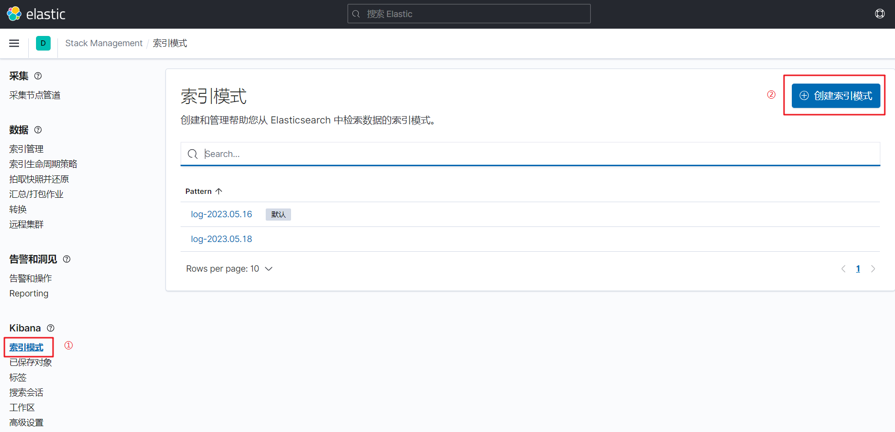 如果想用kibana方便的查看日志的数据,可以添加索引模式,如下图
