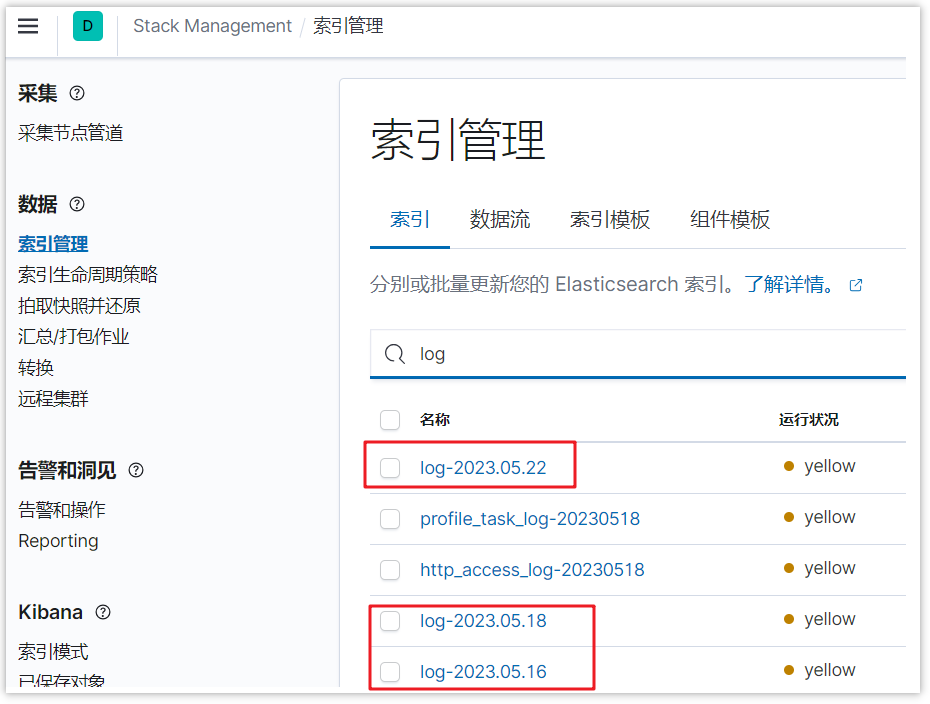 index => "log-%{+YYYY.MM.dd}" # 指定索引名,可以根据自己的需求指定命名