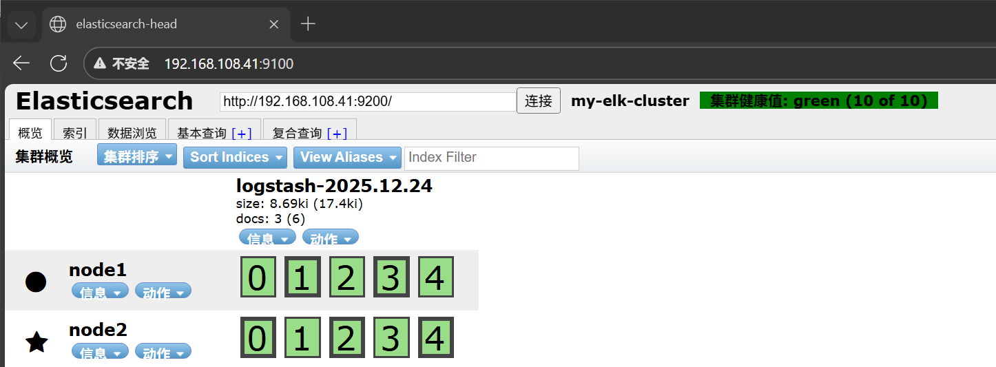 logstash(apache节点)与elasticsearch(node节点)做对接测试