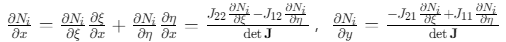 dN_dx(i) = invJ(1,1)*dN_dxi(i) + invJ(1,2)*dN_deta(i);