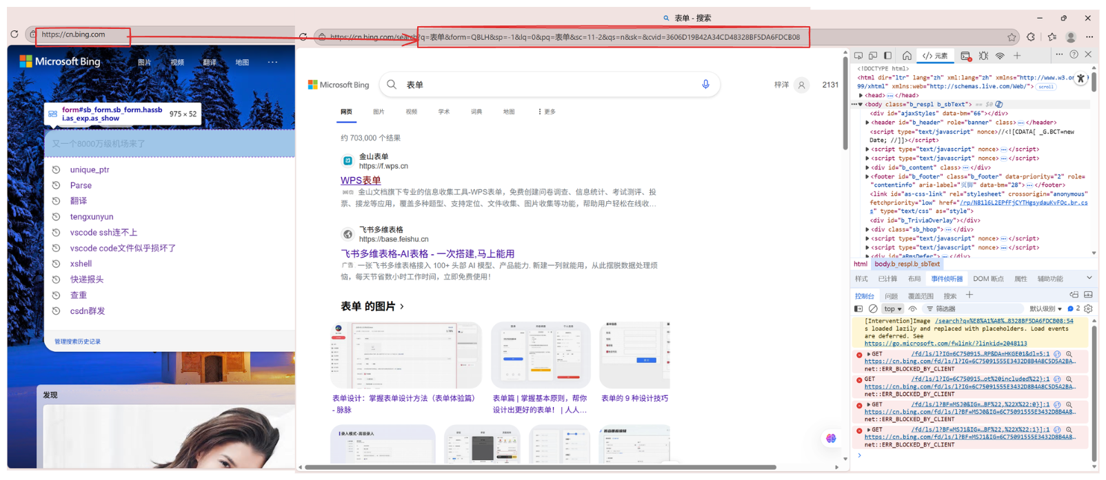 可以看到我们常见的搜索框就是一个表单,这里没写方法也说明默认调用的是GET。那么我们尝试搜索: