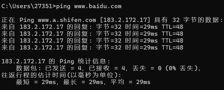 我们可以在cmd中用ping指令调出域名和ip地址的转换: