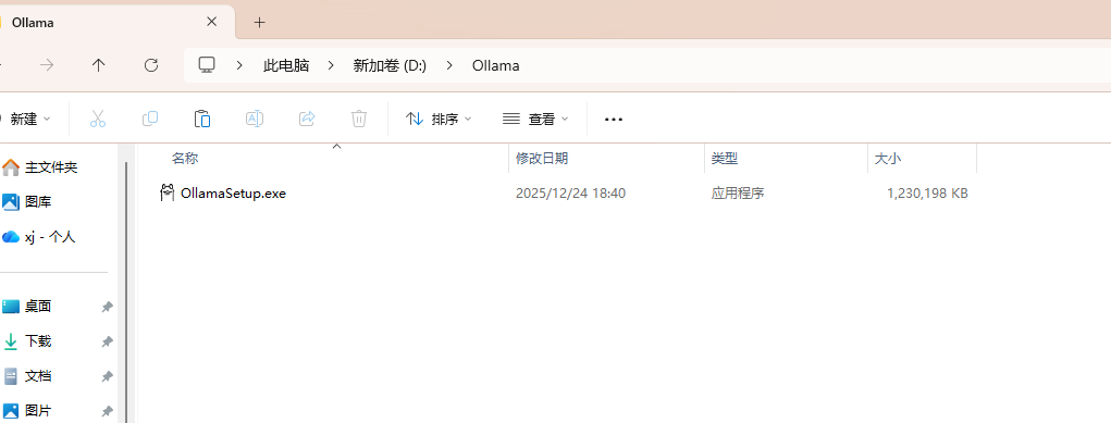 点击访问https://ollama.com/download,下载windows版本,下载好后,不要直接点击安装,默认路径是在c盘,占空间,需要自定义安装,将exe文件复制到自定义路径。