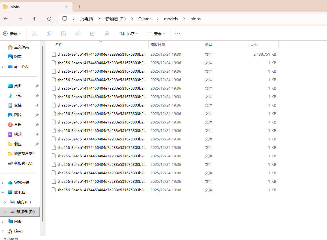 打开自定义的models文件夹里的blobs,里面就是安装下载的大模型
