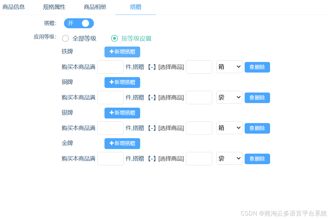 "满N送n"搭赠功能的核心是规则的清晰落地,需兼顾计算精准性与场景灵活性,避免因规则模糊或逻辑漏洞引发问题。首先,要明确核心规则定义,清晰界定"满N"的计算范围(如是否包含运费、税费,是否限特定商品品类/规格)、"送n"的赠品规则(如赠品是否可选、是否限库存,是否支持多档叠加)。例如,需区分"满10件送2件同品""满1000元送10件指定赠品"等不同模式的计算逻辑,确保系统能精准识别订单条件并触发对应搭赠权益。其次,要适配多场景灵活配置需求,考虑到企业可能针对不同客户层级(如普通客户、VIP客户)、不同时间段(如促销季、日常)设置差异化搭赠规则,系统需支持规则的批量创建、修改与停用,同时具备优先级排序功能(如促销规则优先于日常规则),避免规则冲突。此外,需添加异常订单处理逻辑,针对订单取消、退货、部分退款等场景,明确搭赠权益的同步调整规则(如退货后不再满足满赠条件时,需同步收回赠品或抵扣对应金额),保障企业与客户的权益平衡。
